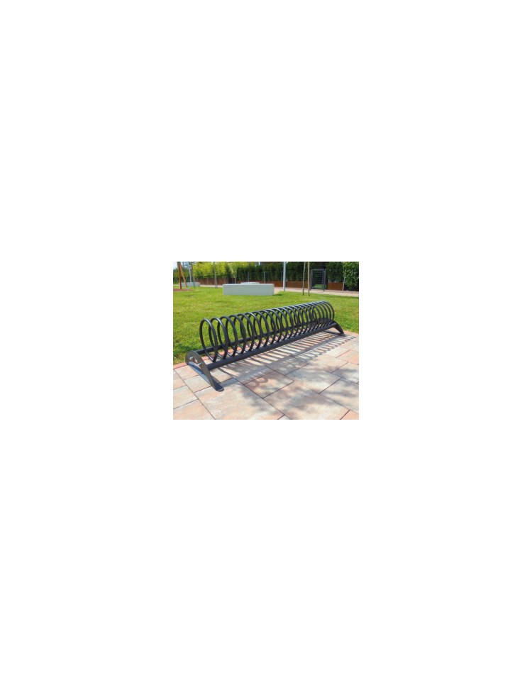 Il portabici è costituito da un elemento a spirale fatto saldato a due tubolari orizzontali tondi in acciaio. Alle estremità dei tubolari orizzontali sono saldate le staffe in piatto opportunamente forate per il fissaggio ai supporti laterali di sostegno tramite viti. I fianchi, ricavati da taglio laser e piegati a 90°, sono provvisti di fori per il tassellamento al suolo. Le parti metalliche sono zincate e verniciate a polveri poliestere termoindurenti nelle diverse colorazioni RAL. Con accostamenti in serie può fare composizione a batteria. La viteria è in acciaio inox. Molto robusto è in grado di sopportare bene le intemperie, oltre ad avere un design moderno ed essenziale. Adatto a scuole, oratori, stazioni, ecc.
