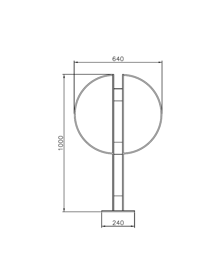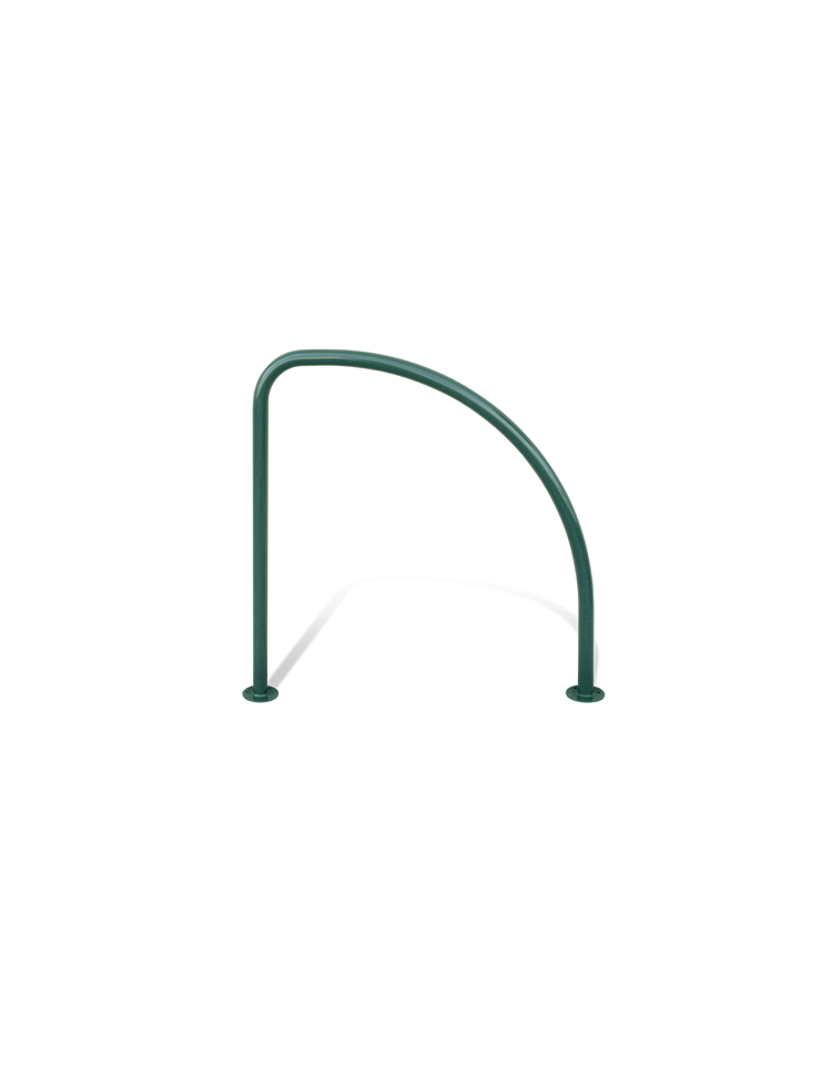 Portabici realizzato in piatto, molto robusto e di buon design. Tra i due supporti centrali sono saldate delle piastrine in piatto per irrobustire e rendere elegante la struttura, lateralmente sono saldati due archi in piatto dove viene appoggiato e fissato il telaio della bici. Il fissaggio al suolo è previsto con piastra base con fori per il fissaggio tramite tasselli ad espansione. Il portabici è in acciaio zincato e verniciato a polveri poliestere termoindurenti nelle diverse colorazioni RAL. Singolo o a batteria può arredare e rendere gradevole un’area adibita a parcheggio bici.