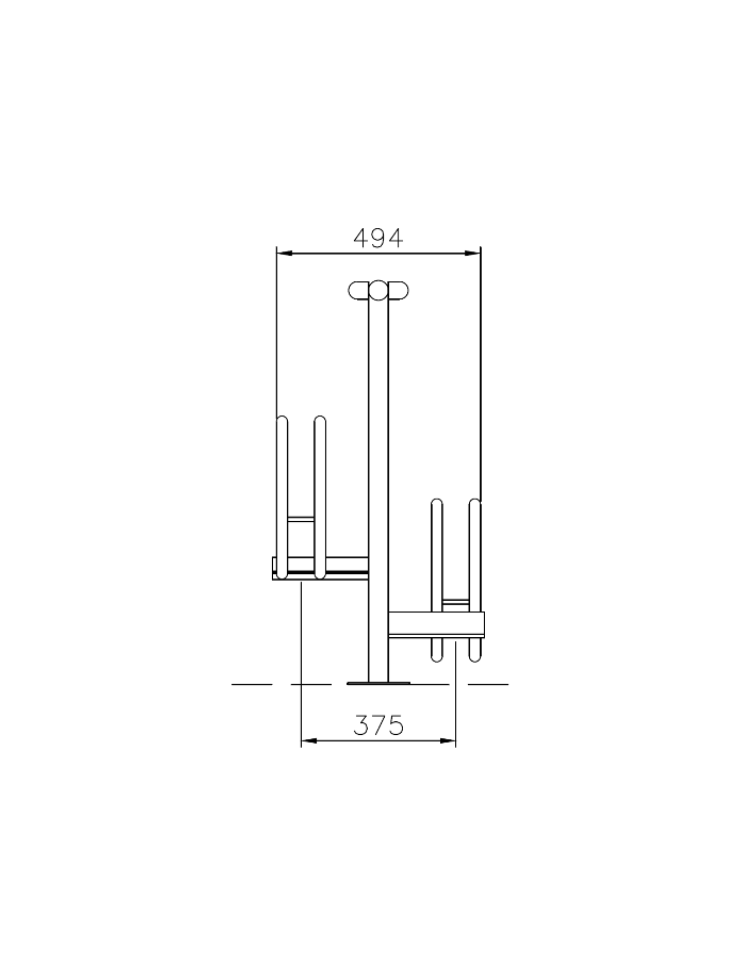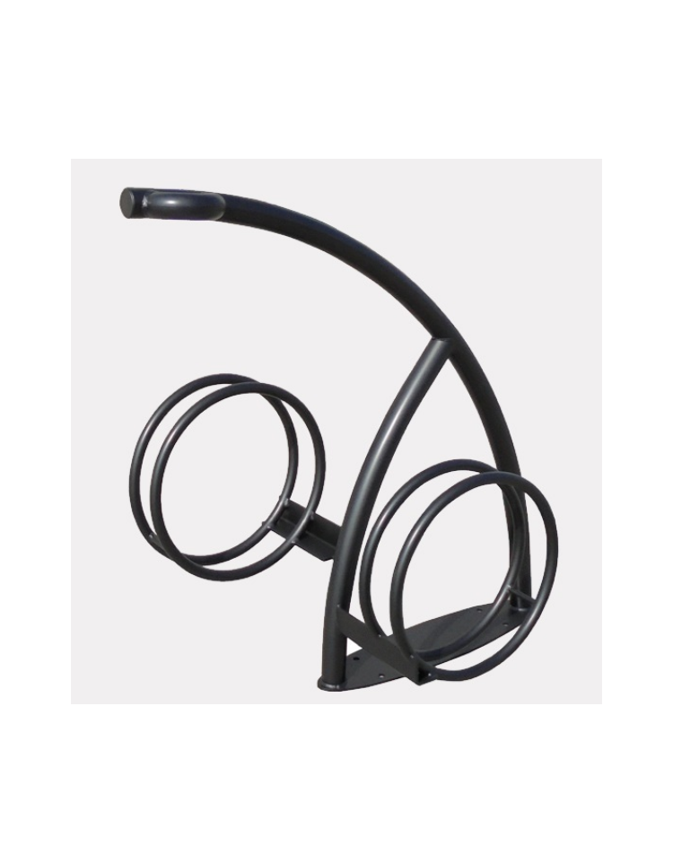 Portabici a due posti composto da disco porta ruota in tubolare e tubolare di sostegno per fissare il telaio della bici. Il fissaggio al suolo è previsto con piastra base con fori per il fissaggio tramite tasselli ad espansione. Struttura in acciaio zincato e verniciato a polveri nelle varie colorazioni RAL. Si può posare a batteria o singolarmente. Design di nuova generazione con poco ingombro che permette una facile pulizia del suolo, molto robusto e funzionale.