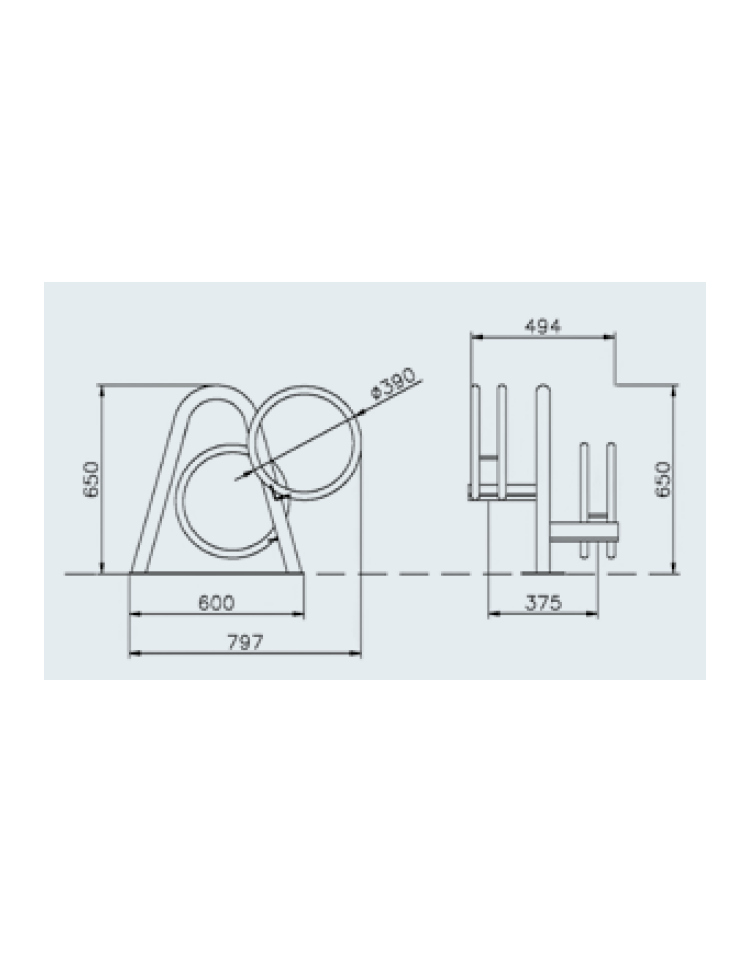 Portabici basso 2 posti realizzato in acciaio zincato e verniciato. Da tassellare - cm 49,4x79,7x4x65h