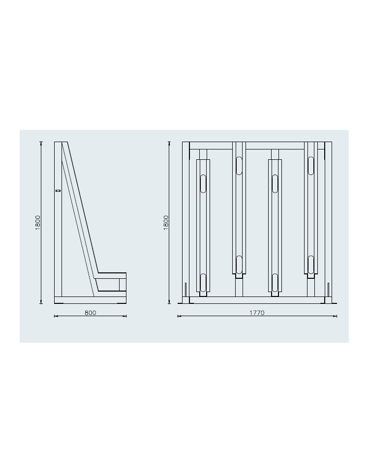 Tutte le parti metalliche sono zincate a caldo senza verniciatura. Fissaggio a parete – posizione 45°.