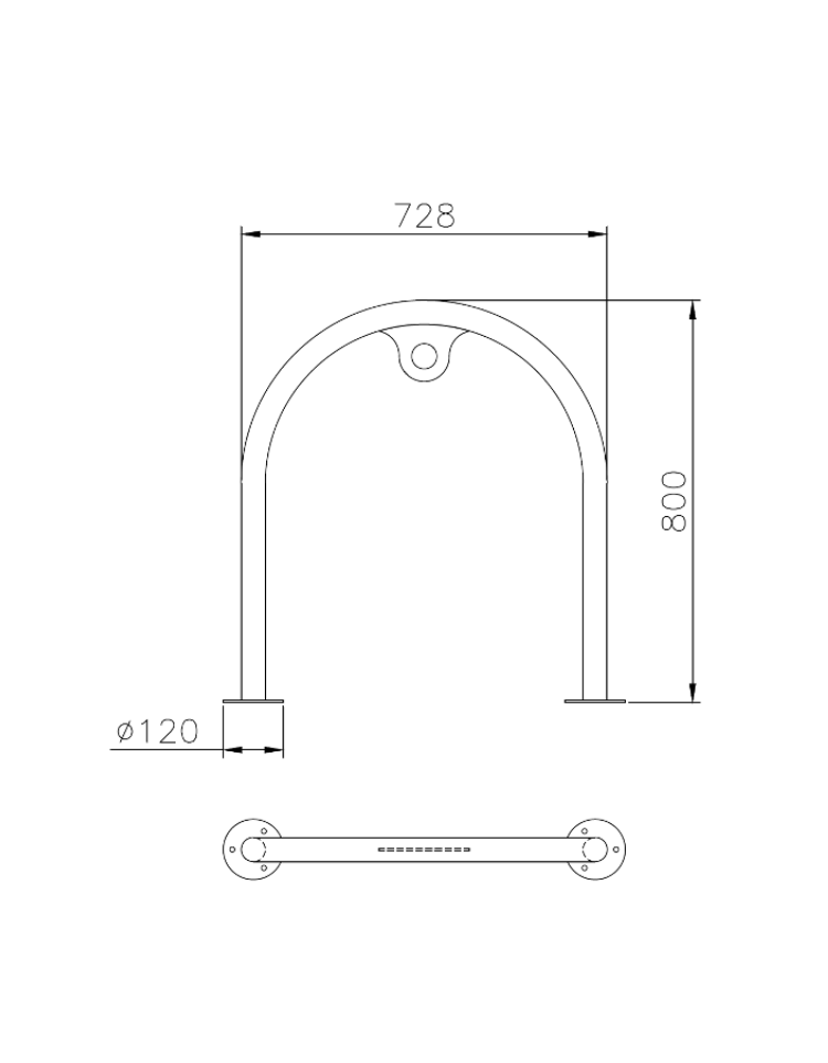 Portabici realizzato in tubolare sagomato ad arco e con piastre di base con tre fori per il fissaggio al suolo tramite tasselli ad espansione. L’elemento centrale è realizzato in lamiera sagomata con taglio laser con funzione di decoro e per poter assicurare la bicicletta sul telaio tramite catena con lucchetto. Tutte le parti sono zincate e verniciate a polveri poliestere termoindurenti nelle diverse colorazioni RAL.