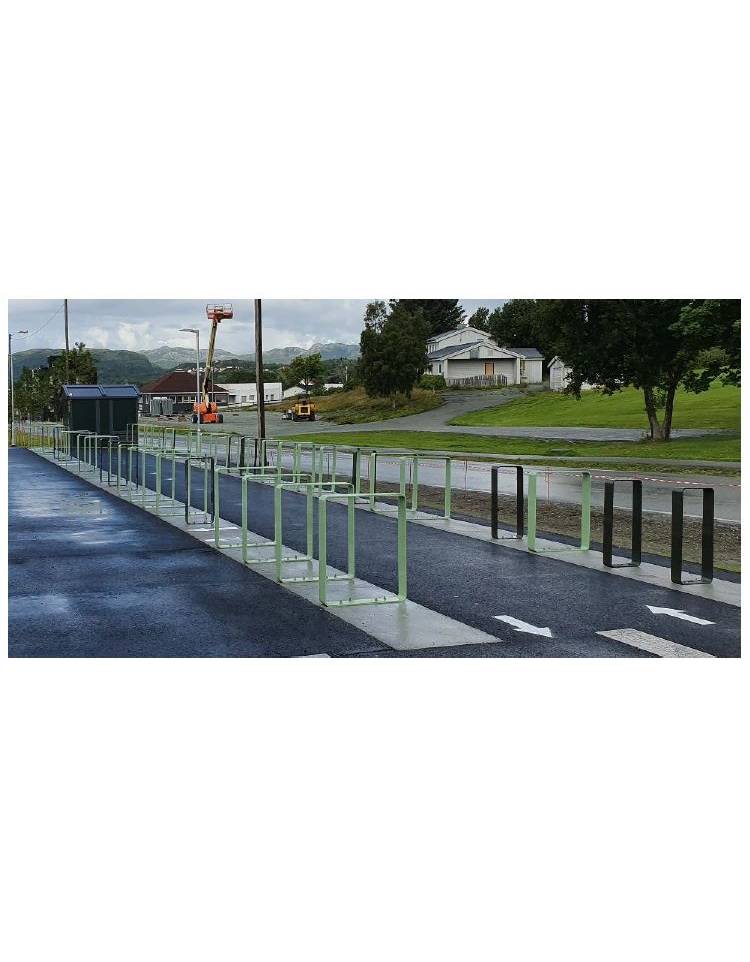 Portabici ad 1-2 posti realizzato in piatto sagomato ad U rovescio adatto per il fissaggio al suolo con tasselli. Le parti metalliche sono zincate e verniciate a polveri poliestere termoindurenti nelle diverse colorazioni RAL. Si può installare singolarmente o a batteria. Molto robusto e di design, semplice ma funzionale, può essere accoppiato a batteria in pensiline portabici o a fianco di panchine per la sosta.
