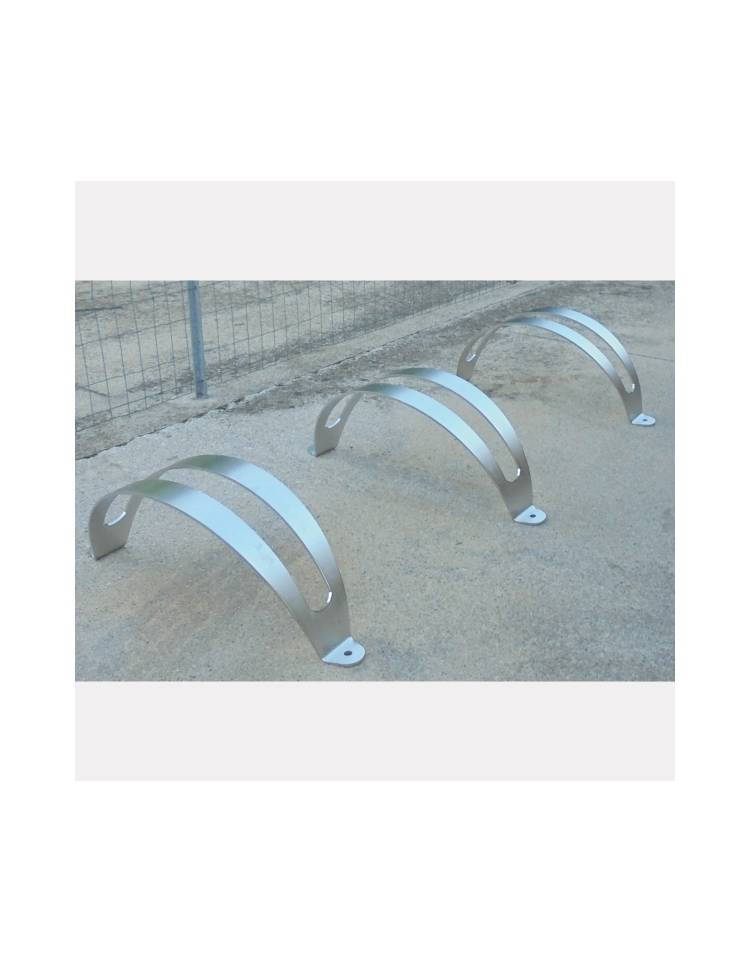 Portabici ad 1 posto realizzato mediante piegatura a freddo di tubolare in acciaio. Il portabici viene fornito con piastra di base da tassellare. E’ fornito in in acciaio inox. Si può mettere singolarmente o a batteria. La caratteristica principale è che la bici viene appoggiata e fissata al telaio, molto robusto ed anche utile come ornamento e delineatore di spazi.