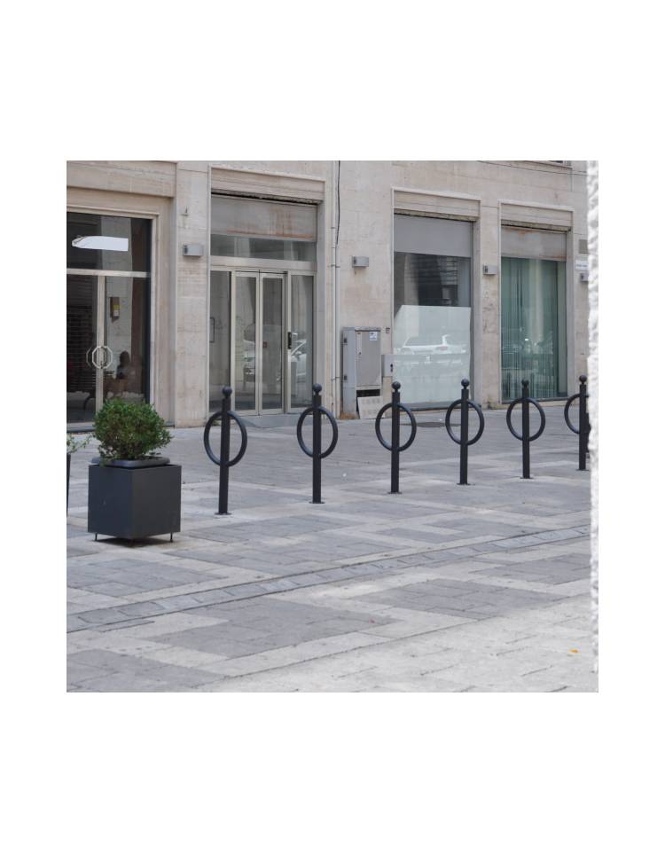 Portabici realizzato con un tubolare di acciaio con sovrastante sfera decorativa in acciaio forgiato. Al tubolare sono saldate due semicerchi in tubo tondo sagomato utili a sostenere ed assicurare la bicicletta. Tutte le parti sono zincate e verniciate a polveri poliestere termoindurenti secondo le diverse colorazioni RAL. Gradevole e di buon design sia per la funzione di portabici che per l’arredo dell’area destinata al parcheggio delle bici.