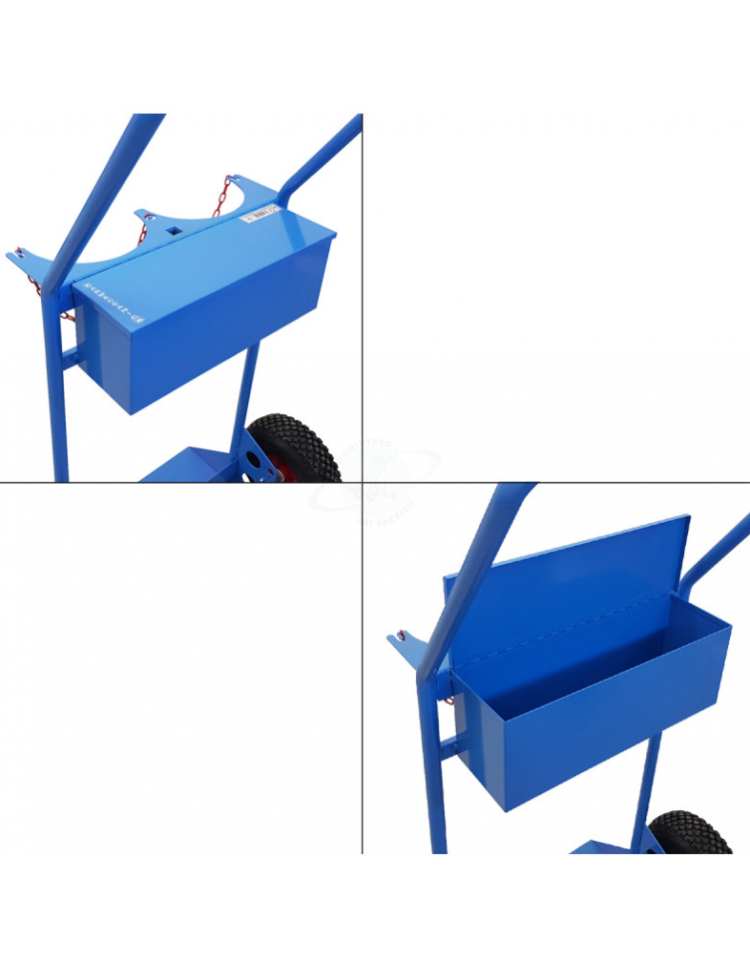 Portabombole biposto con cassetta lt 40/50 ruote pneumatiche - per bombole cm Ø25 - 2 ruote pneumatiche Ø cm 30 - cm 81x49x133,5