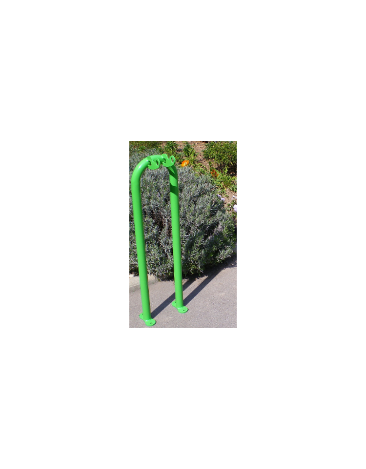 Portamonopattini a posto singolo, realizzato mediante piegatura a freddo di tubolare in acciaio. Nella parte superiore sono saldate due flange che fungono da appoggio per manubrio del monopattino. Oltre ai monopattini, può essere utilizzato anche per le bici. Il portamonopattini è fornito con piastra di base da tassellare. E’ realizzato in acciaio zincato e verniciato a polveri poliestere termoindurenti in varie colorazioni RAL.