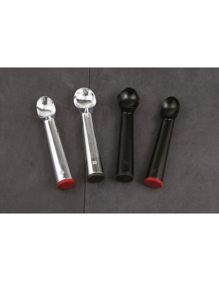 Questo porzionatore è ideale per realizzare palline di gelato artigianale o industriale, dal pozzetto o dalla vaschetta, servendole da sole o guarnite con frutta, canditi, granella e glasse.