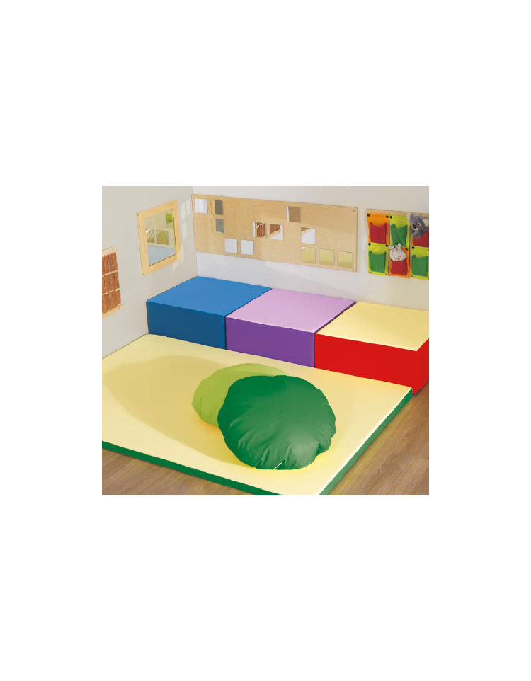 Gli arredi morbidi sostengono e incoraggiano lo sviluppo relazionale e sensomotorio dei bambini da 0 a 6 anni, con un sistema di elementi combinabili con estrema flessibilità, progettati per le esperienze di scoperta del corpo e dello spazio. Sono di facile manutenzione, privi di PVC e ignifughi in Classe 1IM ai sensi del Decreto del Ministero dell’Interno 16.07.2014: ciò significa che non solo il rivestimento esterno, ma l’intero manufatto è ignifugo. I morbidi si caratterizzano per un alto grado di aderenza al pavimento negli accostamenti laterali e verticali.
