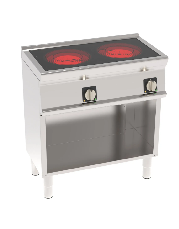 • Cucina elettrica trifase-6,8kw su vano aperto, con 2 piani di cottura in vetroceramica - cm 80x45x90h Cucina elettrica trifase-6,8kw su vano aperto, con 2 piani di cottura in vetroceramica - cm 80x45x90h