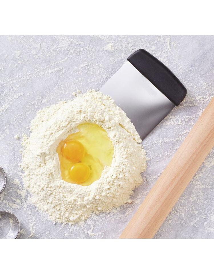 Permette di raccogliere i composti da teglie e ciotole, e di pulire il piano di lavoro dai residui di impasti.