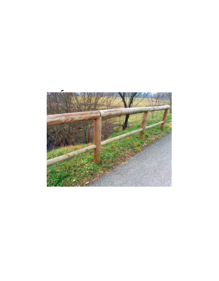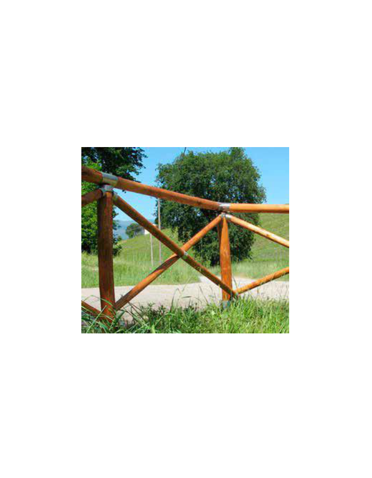 Realizzati in legno di pino nordico impregnato in autoclave con sali atossici. Moduli di lunghezza cm 200. Ogni modulo è costituito da un montante e una traversa orizzontale in legno tondo Ø 12 cm. Tutti i componenti sono privi di spigoli vivi. La recinzione viene fornita al cliente in kit di montaggio, esclusa viteria.