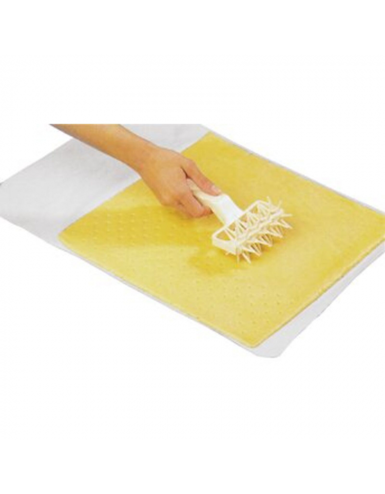Lungo 6 cm e realizzato in polimetilmetacrilato, è semplice e immediato: prima di infornare, basta premerlo sulla sfoglia con movimenti orizzontali per creare una rete di fori in pochi secondi.