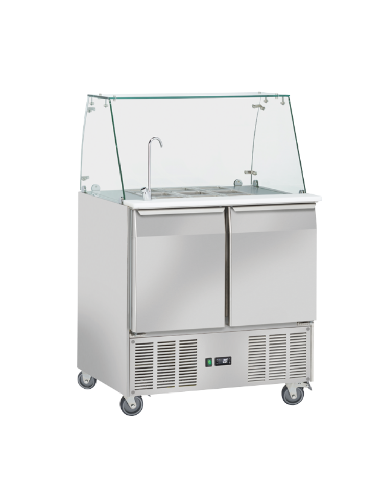 Saladette refrigerata GN1/1 con top inox apribile e 2 sportelli - refrigerazione statica 0°/+8°C - cm 90x70x88,3h