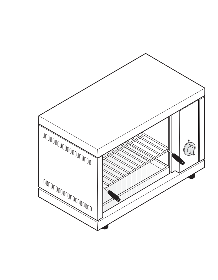 Salamandra elettrica chiusa su 3 lati - superficie di cottura cm 38x38 - potenza tot. Kw 2 monofase - cm 54x40x39h
