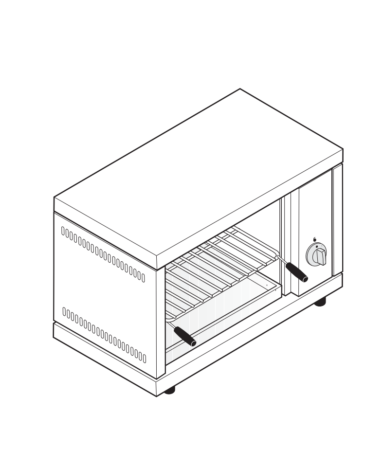 Salamandra elettrica chiusa su 3 lati - superficie di cottura cm 62,5x38 - potenza tot. Kw 4 monofase - cm 79x40x39h