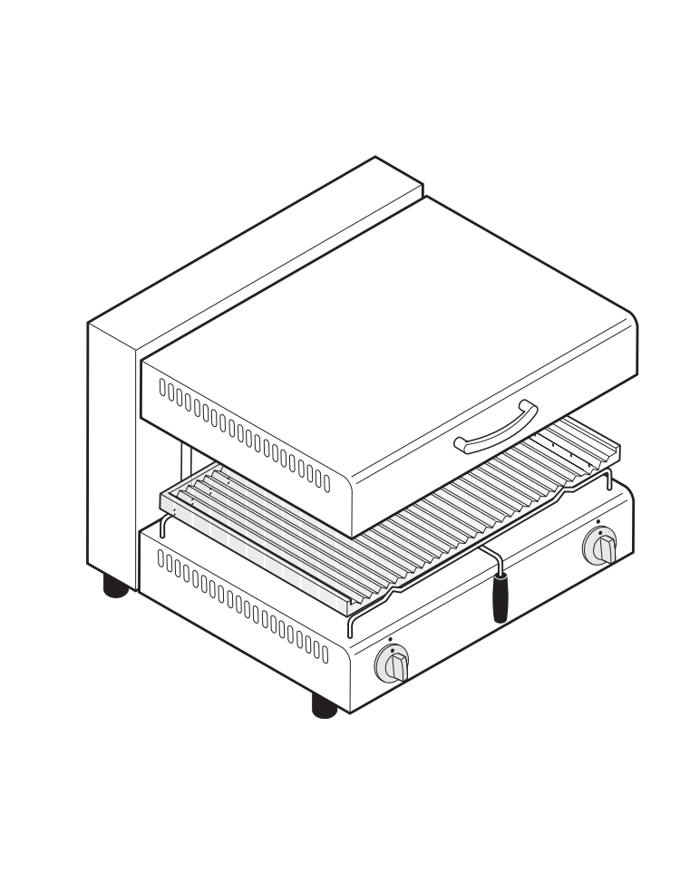 La salamandra è un'apparecchiatura versatile che permette di gratinare, di mantenere in temperatura piatti pronti da servire, rifinire piatti al forno come lasagne e sformati, grigliare e rifinire carni come hamburger, bistecche, würstel, cotolette.