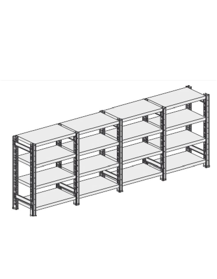 I ripiani sono realizzati in lamiera d'acciaio laminata a freddo tipo DC01/Fe P01 a norma UNI EN 10130 spessore mm. 6/10 oppure mm. 7/10 a secondo della profondità e delle dimensioni del ripiano. Ogni ripiano è prodotto con tre ordini di piega per ogni lato così da irrobustire la struttura e inoltre viene rinforzato con canotti a omega saldati elettricamente in diversi punti. La saldatura viene applicata anche ai quattro angoli dei ripiani. I ripiani sono identici per entrambi le versioni di montaggio “gancio” “bullone”.