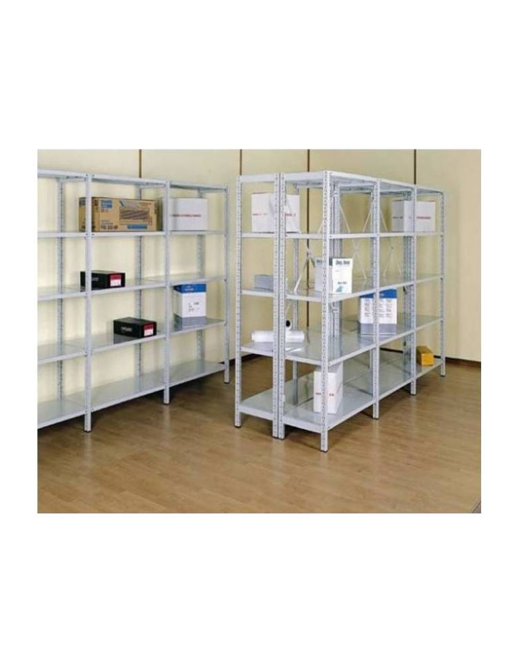 I montanti sono realizzati in lamiera d'acciaio laminata a freddo tipo DC01/Fe e P01 norma UNI EN 10130 spessore mm. 12/10 a sezione a “C” semichiusa, dimensioni mm. 50x32x50, sono asolati sui lati lunghi, dimensioni mm. 3x20 con passo mm. 50. I ganci porta ripiano sono ricavati da nastri zincati spessore mm. 15/10 tipo sendzimir DX51DFe P02G a norme UNI EN 10142/92 e 10147. Le traversine sono realizzate in lamiera d'acciaio mm. 12/10, si agganciano ai montanti formando fiancate con profondità uguale a quella dei ripiani utilizzati per ogni scaffale. Il numero delle traverse varia in conseguenza dell'altezza dei montanti in modo che l'intera struttura abbia la massima rigidità. Le basi in materiale plastico sagomato come la sezione del montante si adattano ad esso perfettamente e contribuiscono alla distribuzione del carico al pavimento.