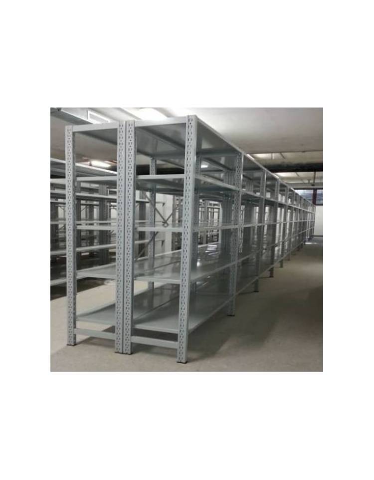 I montanti sono realizzati in lamiera d'acciaio laminata a freddo tipo DC01/Fe e P01 norma UNI EN 10130 spessore mm. 12/10 a sezione a “C” semichiusa, dimensioni mm. 50x32x50, sono asolati sui lati lunghi, dimensioni mm. 3x20 con passo mm. 50. I ganci porta ripiano sono ricavati da nastri zincati spessore mm. 15/10 tipo sendzimir DX51DFe P02G a norme UNI EN 10142/92 e 10147. Le traversine sono realizzate in lamiera d'acciaio mm. 12/10, si agganciano ai montanti formando fiancate con profondità uguale a quella dei ripiani utilizzati per ogni scaffale. Il numero delle traverse varia in conseguenza dell'altezza dei montanti in modo che l'intera struttura abbia la massima rigidità. Le basi in materiale plastico sagomato come la sezione del montante si adattano ad esso perfettamente e contribuiscono alla distribuzione del carico al pavimento.