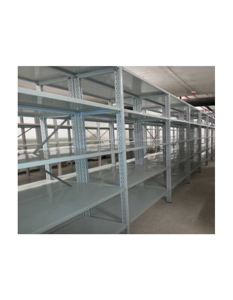 I ripiani sono realizzati in lamiera d'acciaio laminata a freddo tipo DC01/Fe P01 a norma UNI EN 10130 spessore mm. 6/10 oppure mm. 7/10 a secondo della profondità e delle dimensioni del ripiano. Ogni ripiano è prodotto con tre ordini di piega per ogni lato così da irrobustire la struttura e inoltre viene rinforzato con canotti a omega saldati elettricamente in diversi punti. La saldatura viene applicata anche ai quattro angoli dei ripiani. I ripiani sono identici per entrambi le versioni di montaggio “gancio” “bullone”.