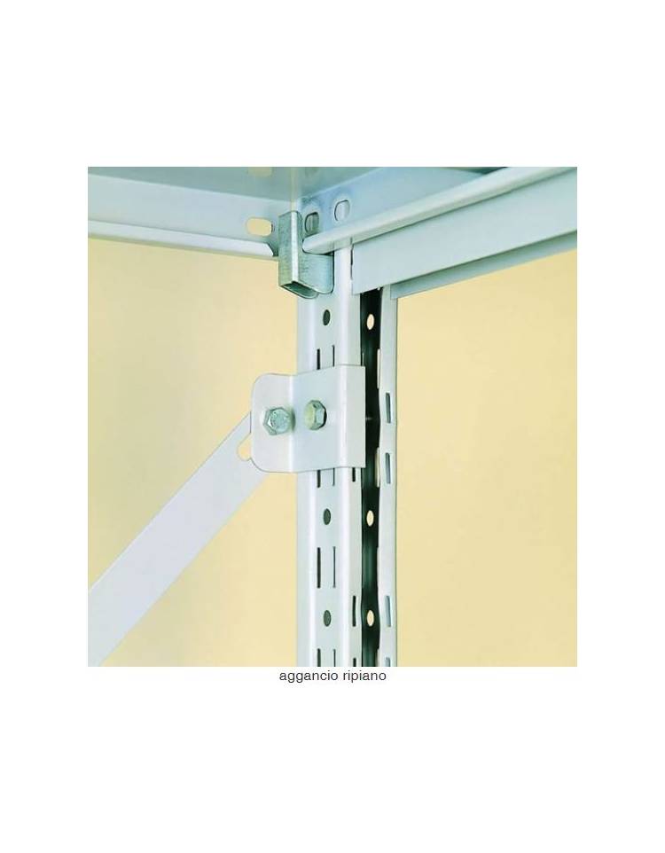 I ripiani sono realizzati in lamiera d'acciaio laminata a freddo tipo DC01/Fe P01 a norma UNI EN 10130 spessore mm. 6/10 oppure mm. 7/10 a secondo della profondità e delle dimensioni del ripiano. Ogni ripiano è prodotto con tre ordini di piega per ogni lato così da irrobustire la struttura e inoltre viene rinforzato con canotti a omega saldati elettricamente in diversi punti. La saldatura viene applicata anche ai quattro angoli dei ripiani. I ripiani sono identici per entrambi le versioni di montaggio “gancio” “bullone”.