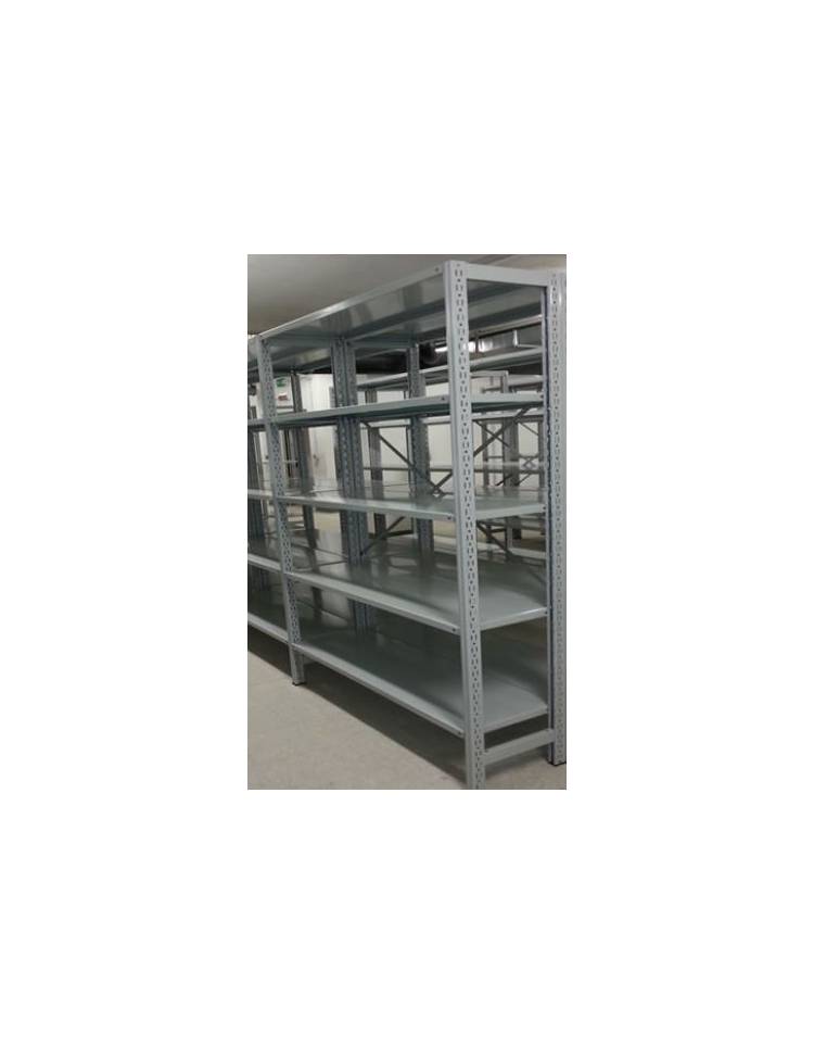 Scaffale metallico in acciaio verniciato RAL 7035 con 5 ripiani cm 70x30 - Montaggio a gancio-Dimensioni esterne cm 76,4x30x250h