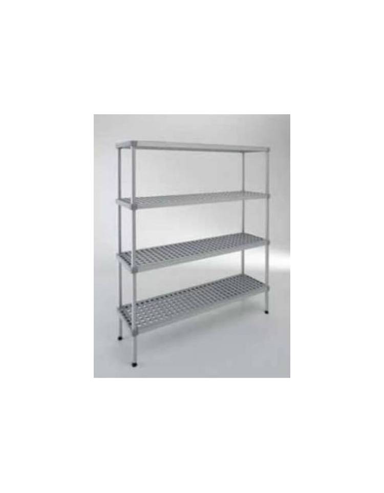 Scaffale per alimenti con montanti in alluminio e 4 ripiani forati in polietilene - cm 160x50x160h - Portata Kg 150 per piano
