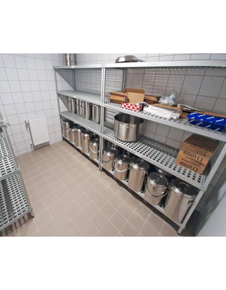 Scaffale per alimenti con montanti in alluminio e 4 ripiani forati in polietilene - cm 170x50x200h - Portata Kg 150 per piano