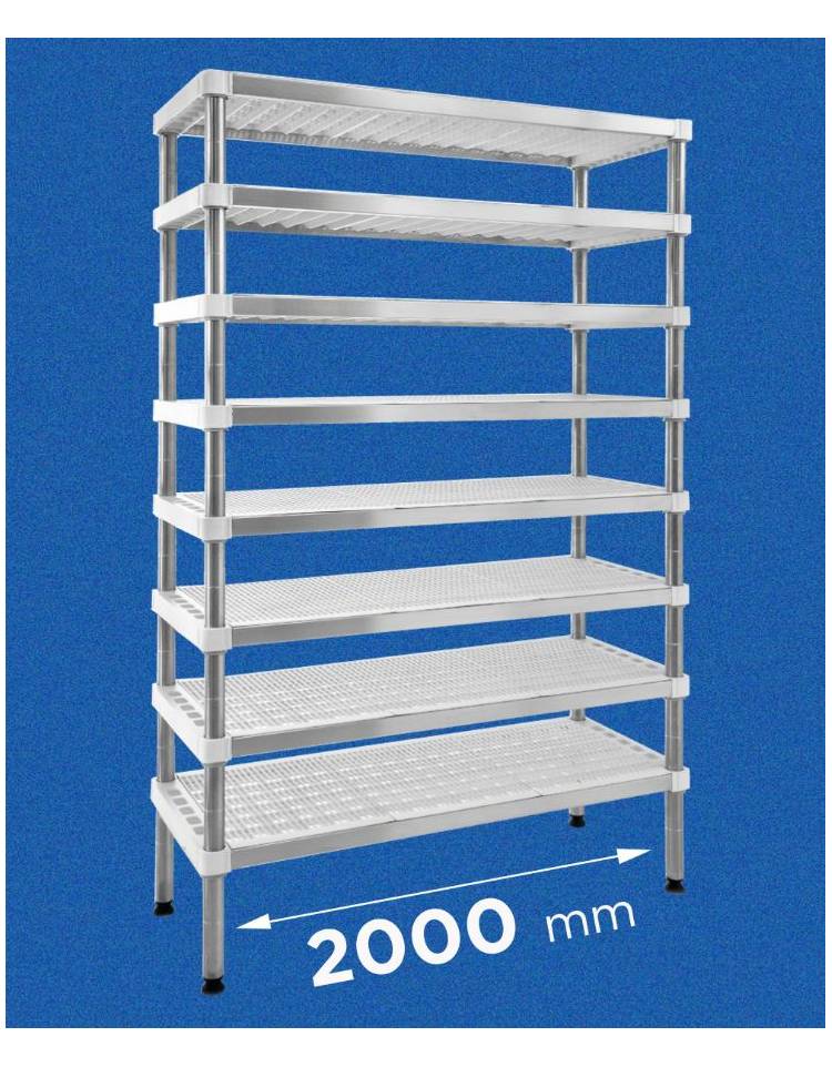 È uno scaffale per alimenti perfetto per la stagionatura del formaggio, grazie ai ripiani micro-forati che prevengono la limitano di condensa. Grazie alla sua struttura in acciaio inox AISI 304 e ripiani in polipropilene, garantisce massima resistenza, igiene e durata nel tempo.
