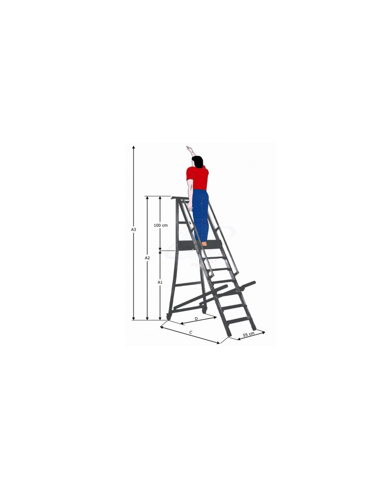 Scala a palchetto a 3 gradini con pedana di lavoro - altezza piano cm 75 - Parapetto da cm 100