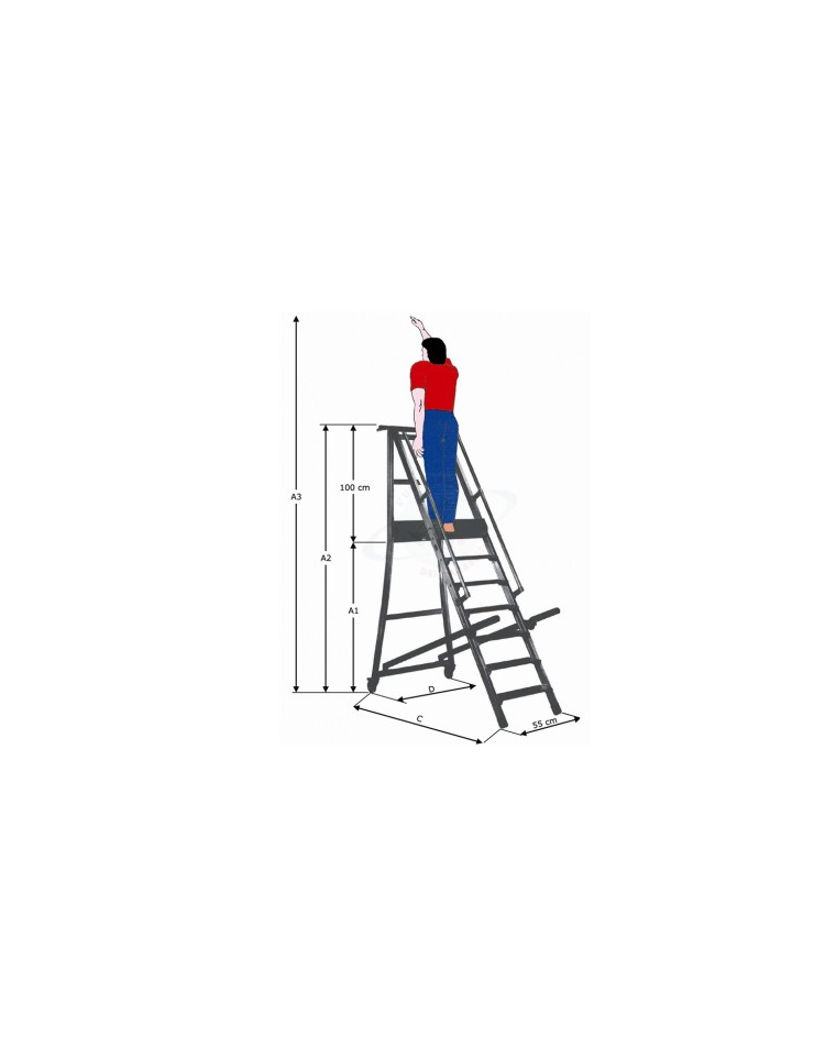 Scala a palchetto a 4 gradini con pedana di lavoro 3+1 - altezza piano cm 100 - Parapetto da cm 100