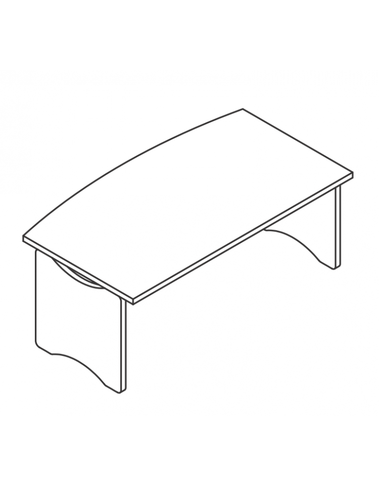 Piano sagomato e fianchi lineari retti realizzati in conglomerato ligneo disponibile spessore 38 mm, nobilitato su entrambe le facce con carte melaminiche certificato FSC, PEFC, Remade in Italy a bassa emissione di formaldeide classe E1, ingifugo in classe 2 di reazione al fuoco (UNI 9177). I fianchi sono collegati ai piani tramite giunzioni metalliche e sono dotati di piedini livellatori in ABS.