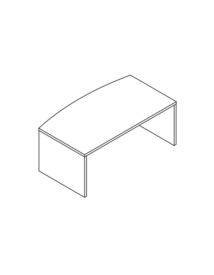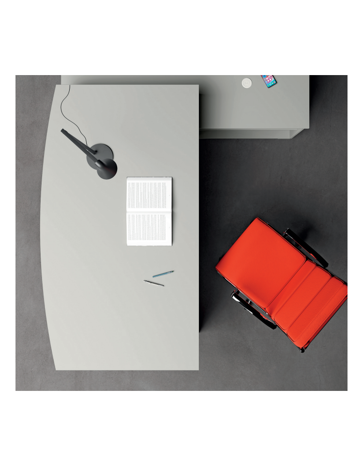 Scrivania con piano sagomato e fianchi pennellati lineari in melaminico, spessore piano mm 38 - Colori a scelta - cm 180x100x74h