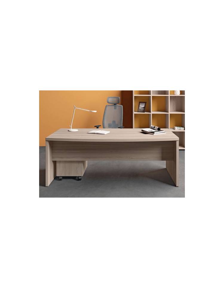 Scrivania con piano sagomato e fianchi pennellati lineari in melaminico, spessore piano mm 38 - Colori a scelta - cm 220x100x74h
