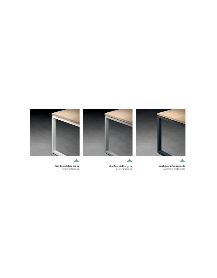 Struttura metallica con gambe ad “Anello chiuso” realizzata in tubo di acciaio sezione 70x30 e dotata di distanziali in nylon in tinta con la struttura. La struttura è verniciata a polveri epossidiche colore grigio, bianco o antracite