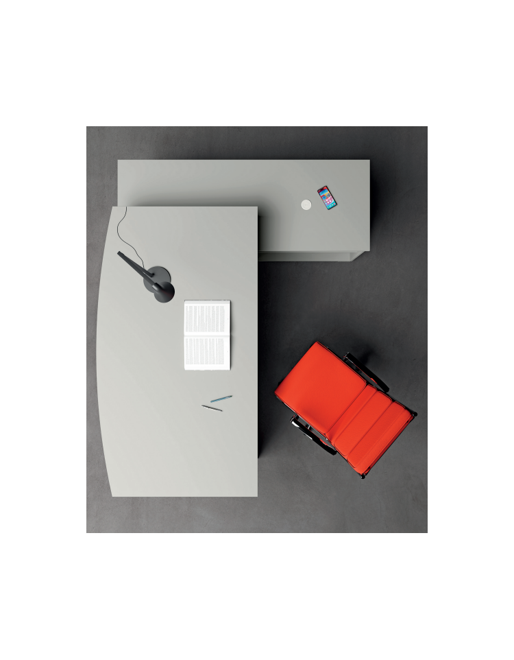 Piano sagomato realizzato in conglomerato ligneo, classe E1 di rilascio formaldeide, nello spessore 38 mm e rivestito con carta melaminica ad alta resistenza. Bordi perimetrali in ABS dello stesso colore del piano, spessore mm 2 con spigoli arrotondati secondo le norme anti-infortunistiche.