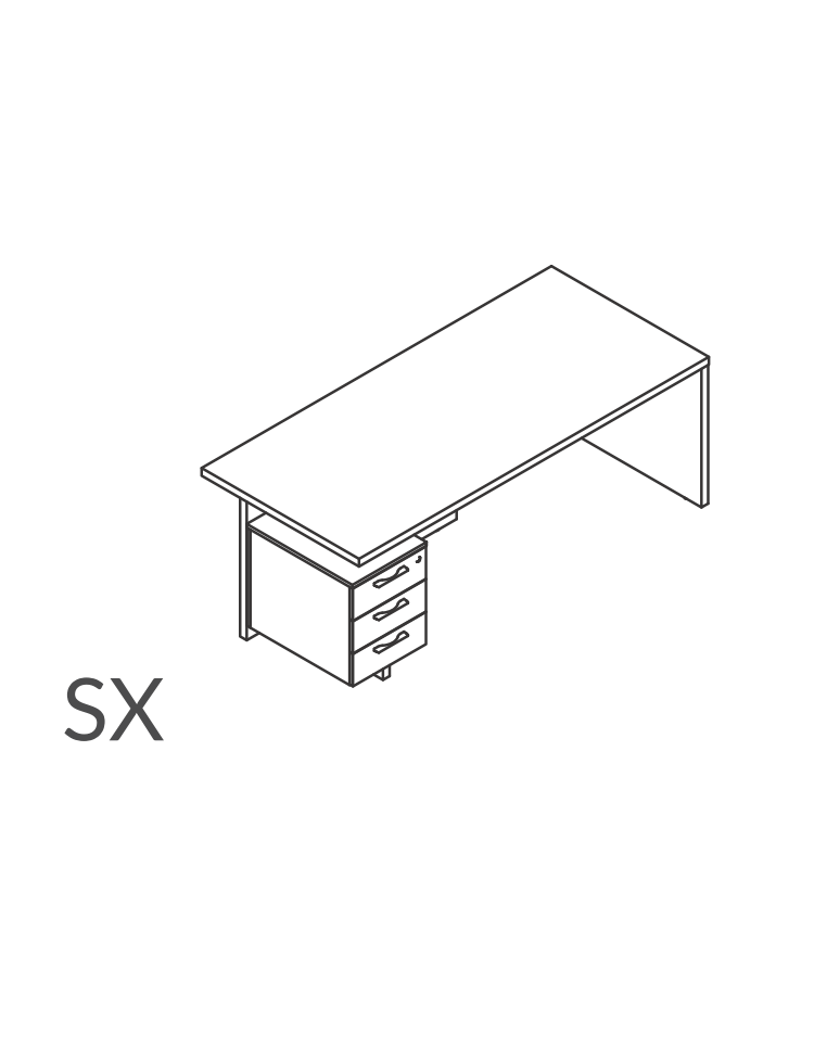 Scrivania presidenziale con cassettiera a sinistra e fianchi in melaminico, spessore piano mm38 -Colori a scelta - cm 180x90x74h