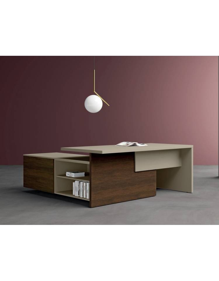 Scrivania presidenziale con servente integrato a destra e fianchi in melaminico - Colori a scelta - cm 220x193,8x74h