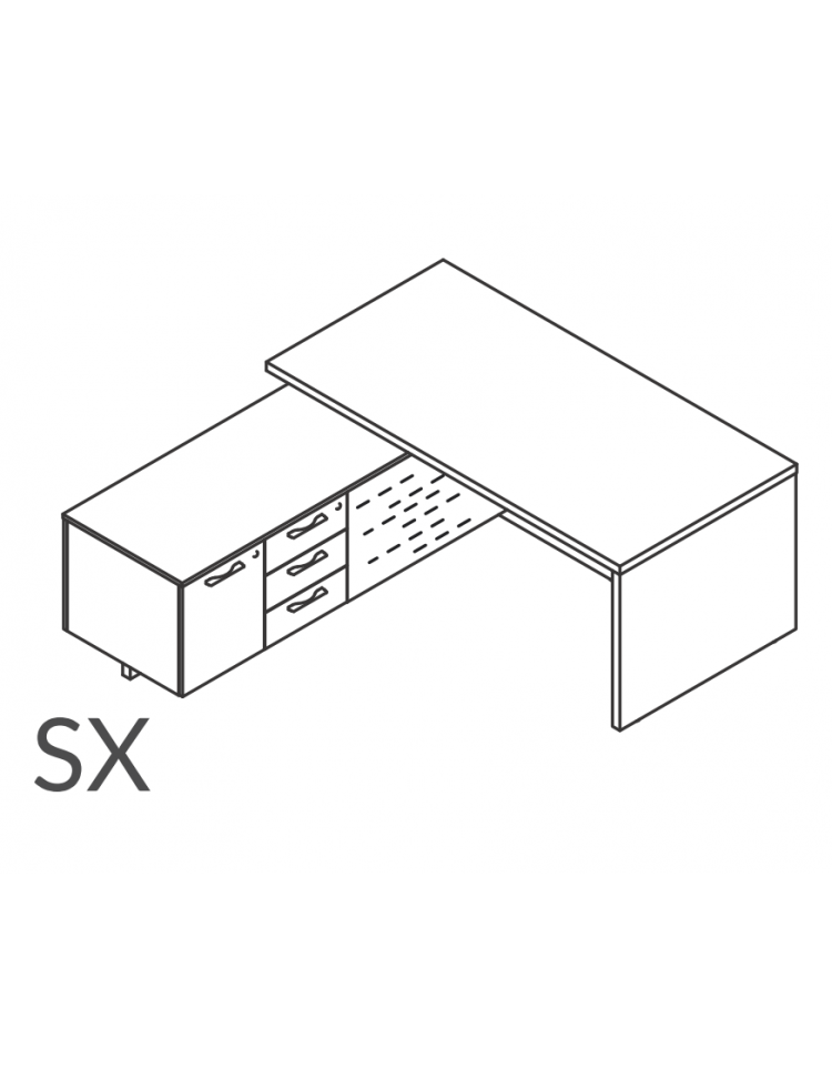 Scrivania presidenziale con servente integrato a sinistra e fianchi in melaminico - Colori a scelta - cm 180x193,8x74h