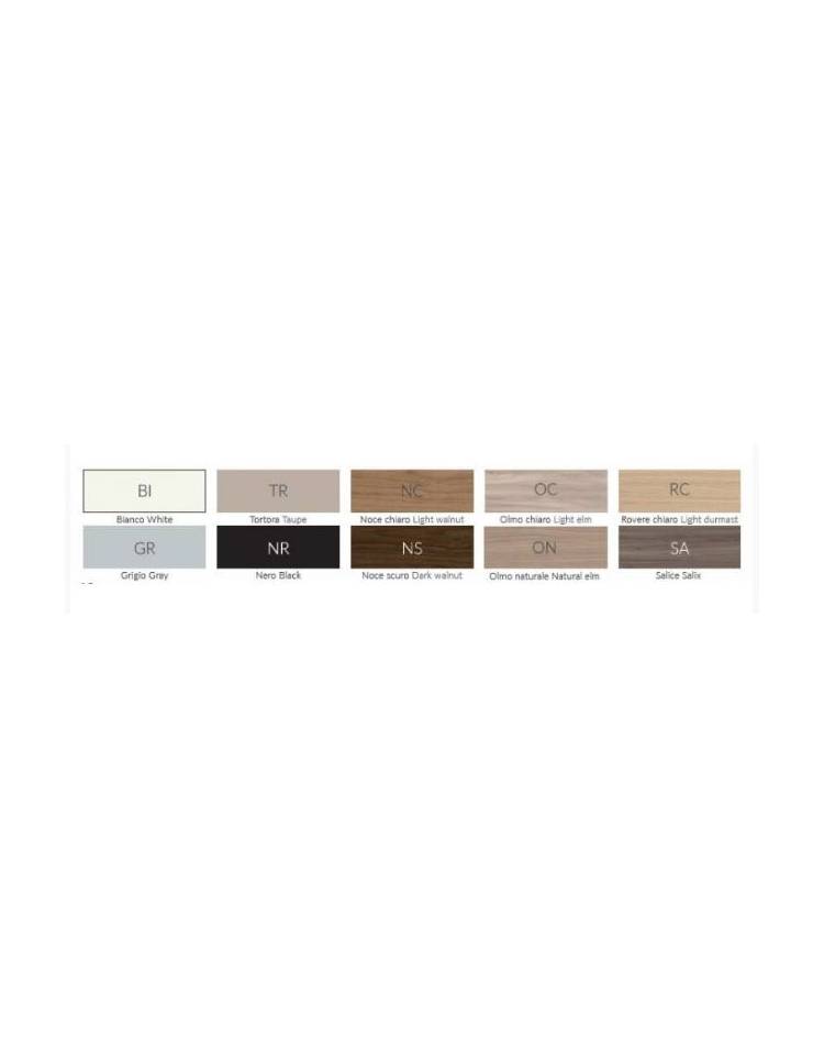 Colori piano : Bianco - Grigio - Tortora - Nero - Noce chiaro - Noce scuro - Olmo chiaro - Olmo naturale - Rovere chiaro - Salice
