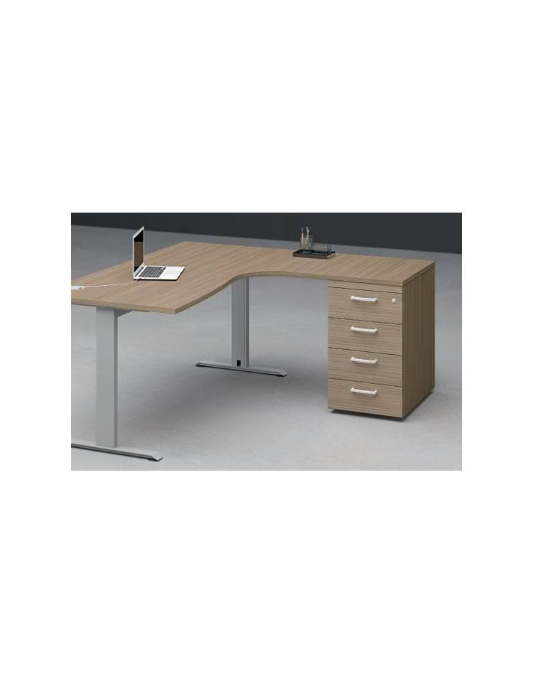 Piani realizzati in conglomerato ligneo, classe E1 di rilascio formaldeide, nello spessore mm 25 e rivestito con carta melaminica ad alta resistenza. Bordi perimetrali in ABS dello stesso colore del piano, spessore mm 2 con spigoli arrotondati secondo le norme antinfortunistiche. Struttura metallica con gambe a “T” rovesciata, fusto verticale in lamiera presso piegata sezione 100x35 con carter interno che permette la salita di eventuali cavi. Trave sotto piano canalizzata, realizzata in lamiera presso piegata sezione 80x35. Travi fissa per i tavoli riunione monoblocco, telescopica per i tavoli riunione composti. Le travi sono verniciate a polveri epossidiche colore grigio, bianco o antracite. Gamboni portanti per raccordi in tubolare sezione 50x50 verniciati a polveri epossidiche colore grigio, bianco o antracite e dotati di piedino livellatore. Modesty panel disponibile per applicazione nelle scrivanie delle varie lunghezze in melaminico sp. mm 18. Gamboni portanti per raccordi, appendici e penisole in tubolare sezione 50x50 verniciati a polveri epossidiche colore grigio, bianco o antracite e dotati di piedino livellatore. Schermi frontali di diverse tipologie sono applicabili, tramite staffe in lamiera piegata e verniciata, al sistema desk.