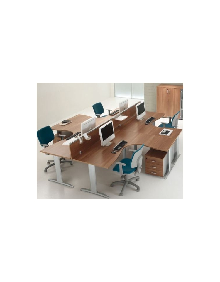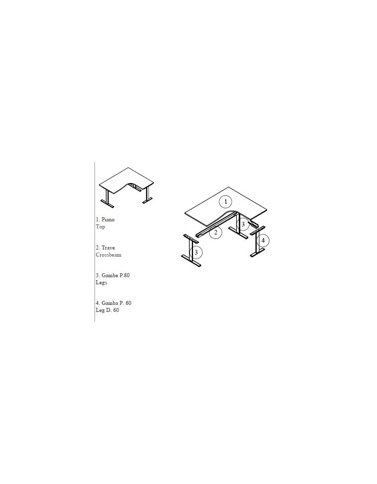 Piani realizzati in conglomerato ligneo, classe E1 di rilascio formaldeide, nello spessore mm 25 e rivestito con carta melaminica ad alta resistenza. Bordi perimetrali in ABS dello stesso colore del piano, spessore mm 2 con spigoli arrotondati secondo le norme antinfortunistiche. Struttura metallica con gambe a “T” rovesciata, fusto verticale in lamiera presso piegata sezione 100x35 con carter interno che permette la salita di eventuali cavi. Trave sotto piano canalizzata, realizzata in lamiera presso piegata sezione 80x35. Travi fissa per i tavoli riunione monoblocco, telescopica per i tavoli riunione composti. Le travi sono verniciate a polveri epossidiche colore grigio, bianco o antracite. Gamboni portanti per raccordi in tubolare sezione 50x50 verniciati a polveri epossidiche colore grigio, bianco o antracite e dotati di piedino livellatore. Modesty panel disponibile per applicazione nelle scrivanie delle varie lunghezze in melaminico sp. mm 18.
