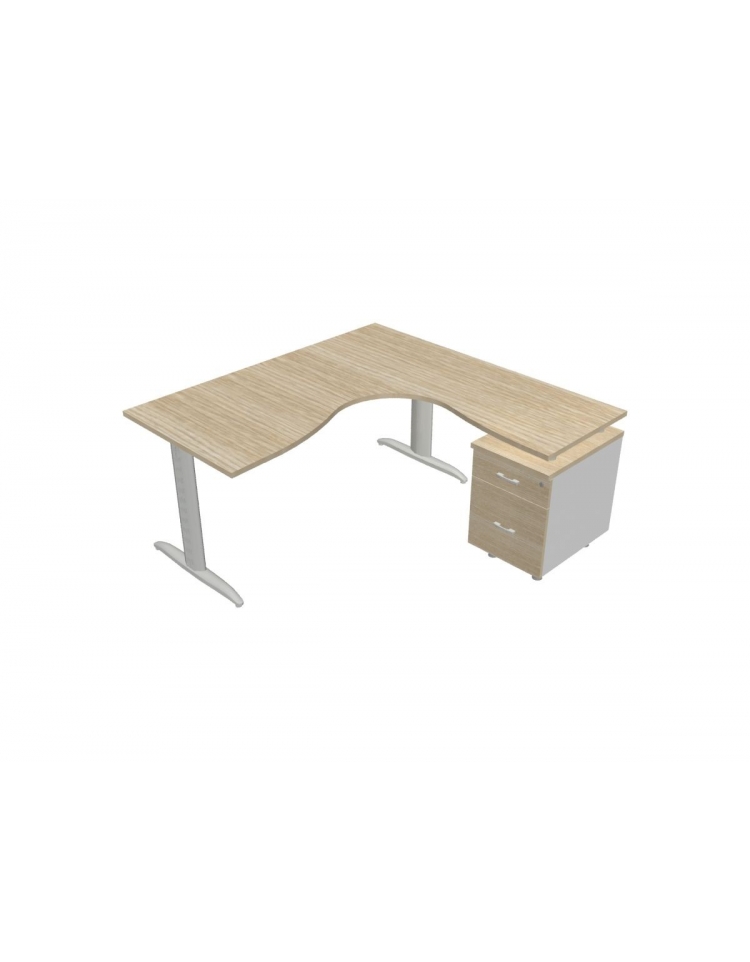 Scrivania workstation a L per ufficio DX-SX con cassettiera e gambe a T rovesciata - cm 160x160x74h