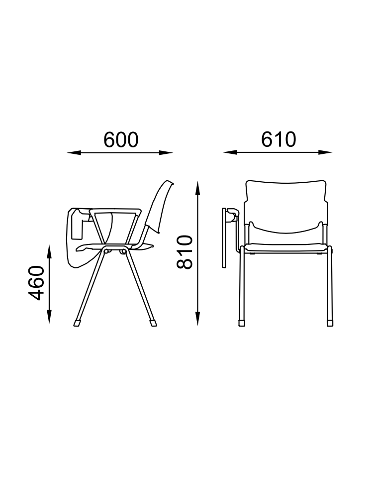 Sedia da attesa - Struttura in acciaio colore nero e schienale forato - con bracciolo e tavoletta - sedile imbottito - CAM