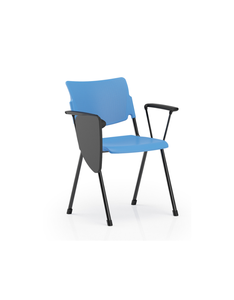 Sedia fissa con braccioli e scrittoio - sedile e schienale in polipropilene - Telaio in acciaio verniciato nero o grigio