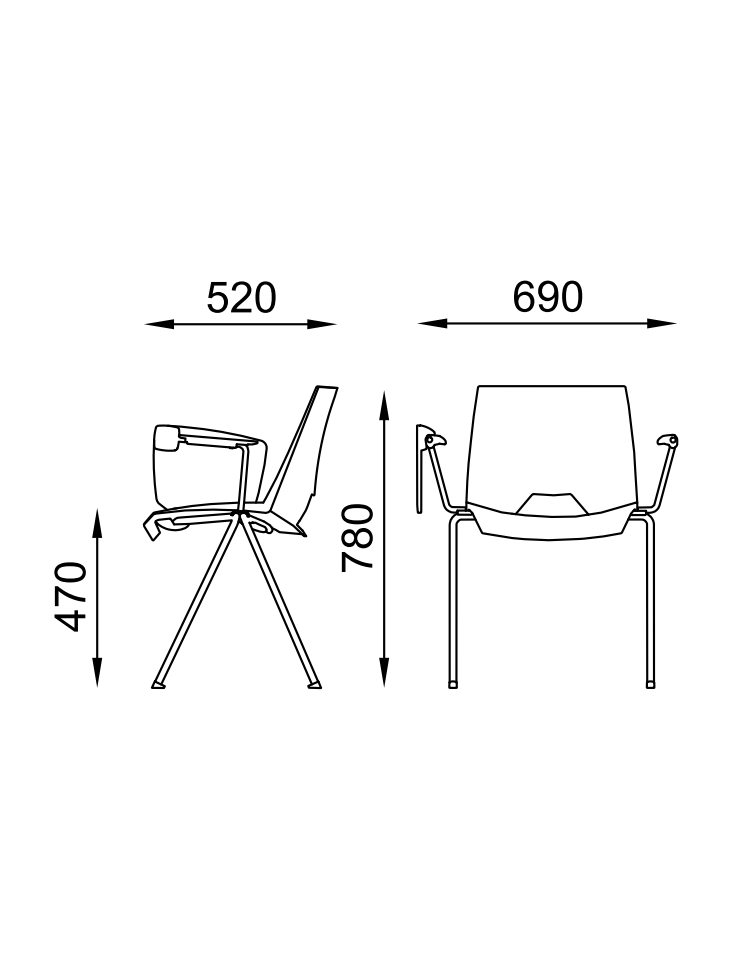 Sedia fissa con telaio a 4 gambe in acciaio cromato, braccioli e tavoletta - Sedile e schienale monoscocca in polipropilene -CAM