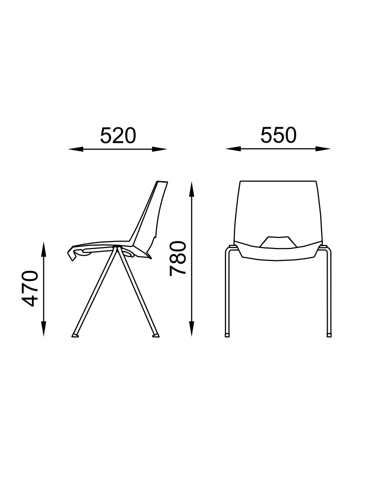 Monoscocca sedile e schienale anatomica con schienale traforato in polipropilene spessore 6mm disponibile in vari colori.