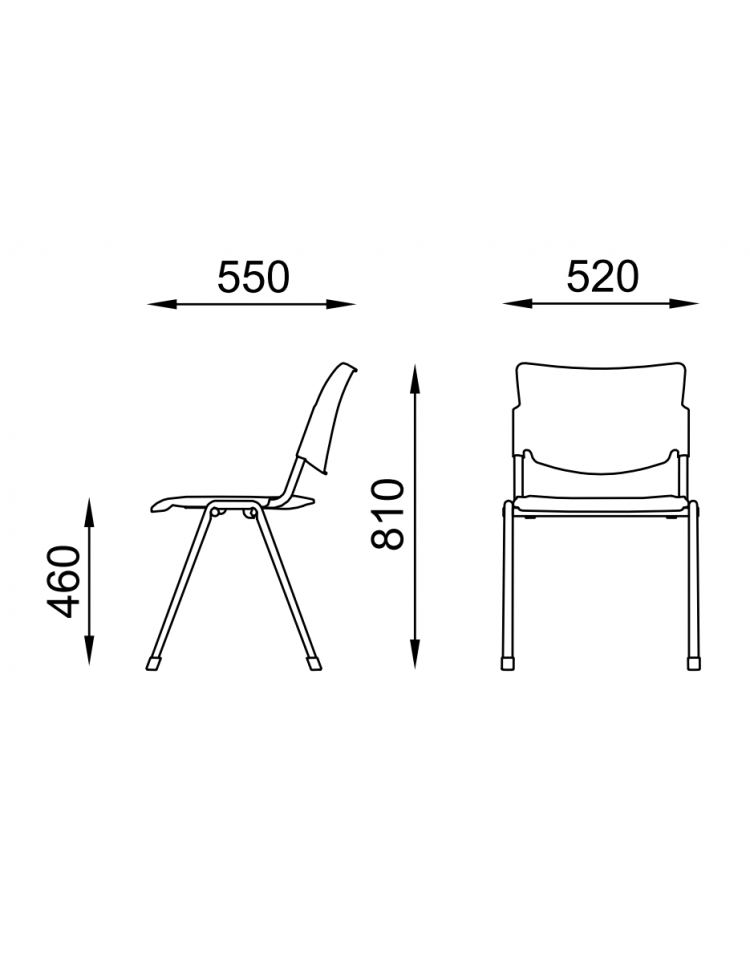Telaio a 4 gambe in tubolare di acciaio verniciato nero o grigio diametro 22 spessore 1,8 mm con traversini in tubolare metallico sottosedile diametro 22 spessore 1,8mm,