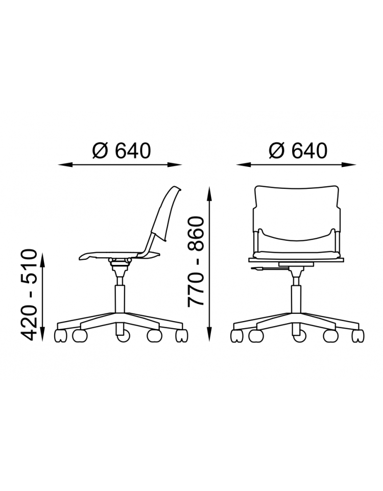Sedia girevole su ruote - sedile e schienale in polipropilene - Telaio in tubo d'acciaio verniciato nero - CAM